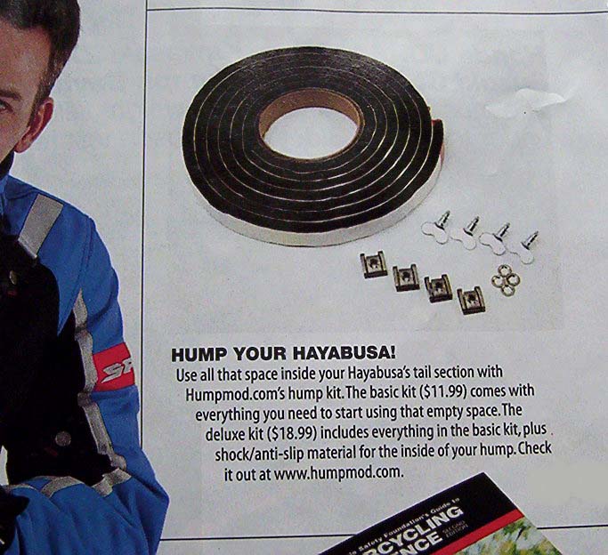 Here’s a testimonial from Sam. He made this video minutes after installing our kit! Many thanks to Sam from HumpMod.com team for his valuable feedback! Turn an empty space inside your Hayabusa hump into a valuable storage space right on your bike by doing the Hump Mod (Hump Modification). One moment - it's closed. And within a few seconds - it's opened. This cost effective solution won't drain your wallet, but will serve you for years to come. Made to exact specifications.